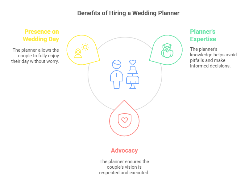 除了节省时间和减轻压力这些明显的好处外,聘请婚礼策划师还提供了一些鲜为人知的好处。他们带来了丰富的知识和专业技能,帮助你避免常见的陷阱并做出明智的决定。婚礼策划师还充当你的代言人,确保你的愿景得到尊重并按计划执行。也许最重要的是,他们让你能够在婚礼当天全身心投入,沉浸在每一个珍贵的时刻,而不用担心细节。