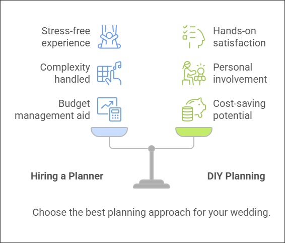 有些情侣喜欢策划婚礼的整个过程,从制作DIY装饰到亲手挑选每一位供应商。如果你是一对亲力亲为、时间充裕且组织能力强的情侣,你可能会享受策划婚礼的挑战。然而,如果你觉得在日常职责和婚礼策划任务之间 juggle 感到不堪重负,那么婚礼策划师可以为你提供你所渴望的无压力体验。